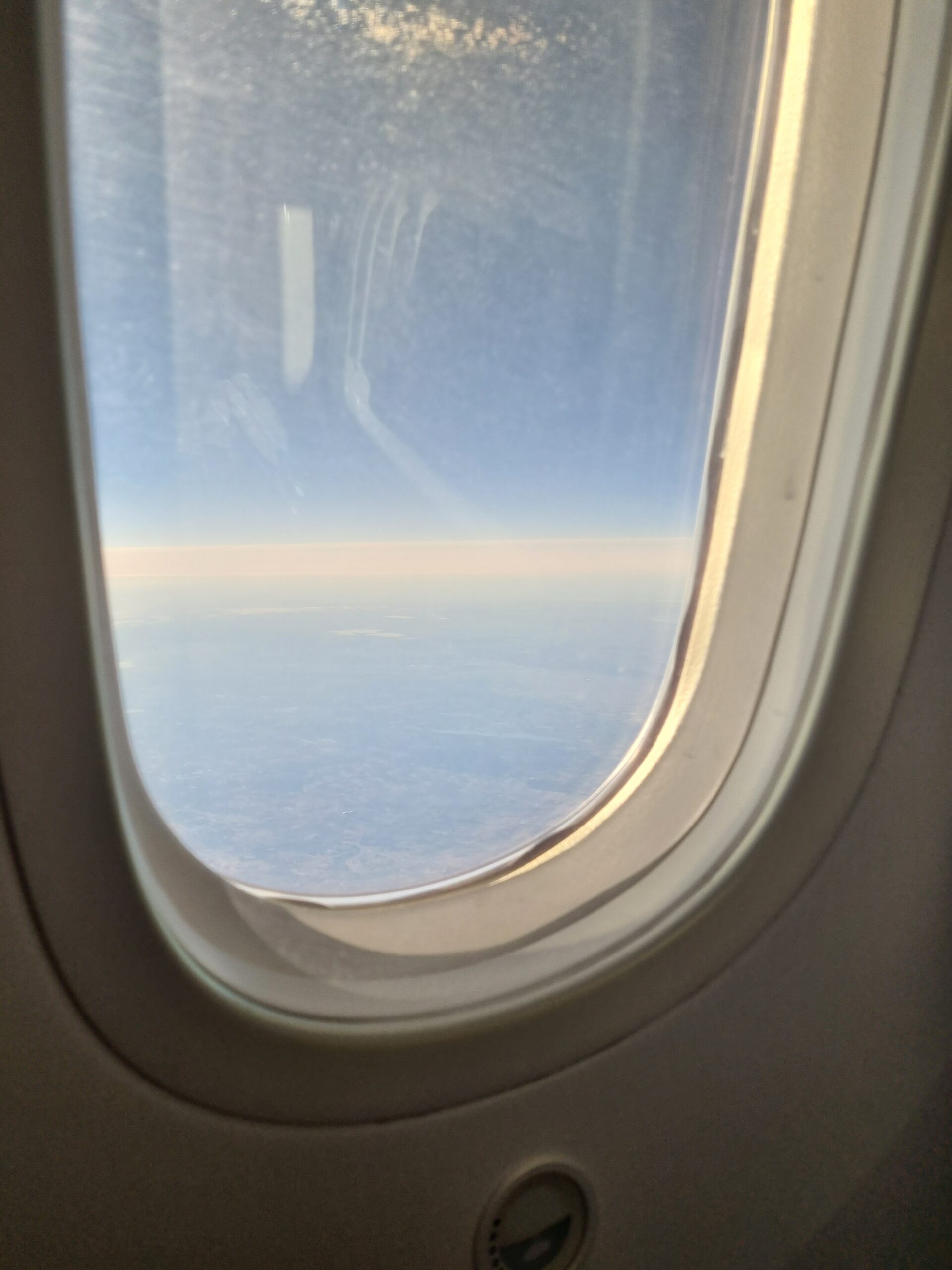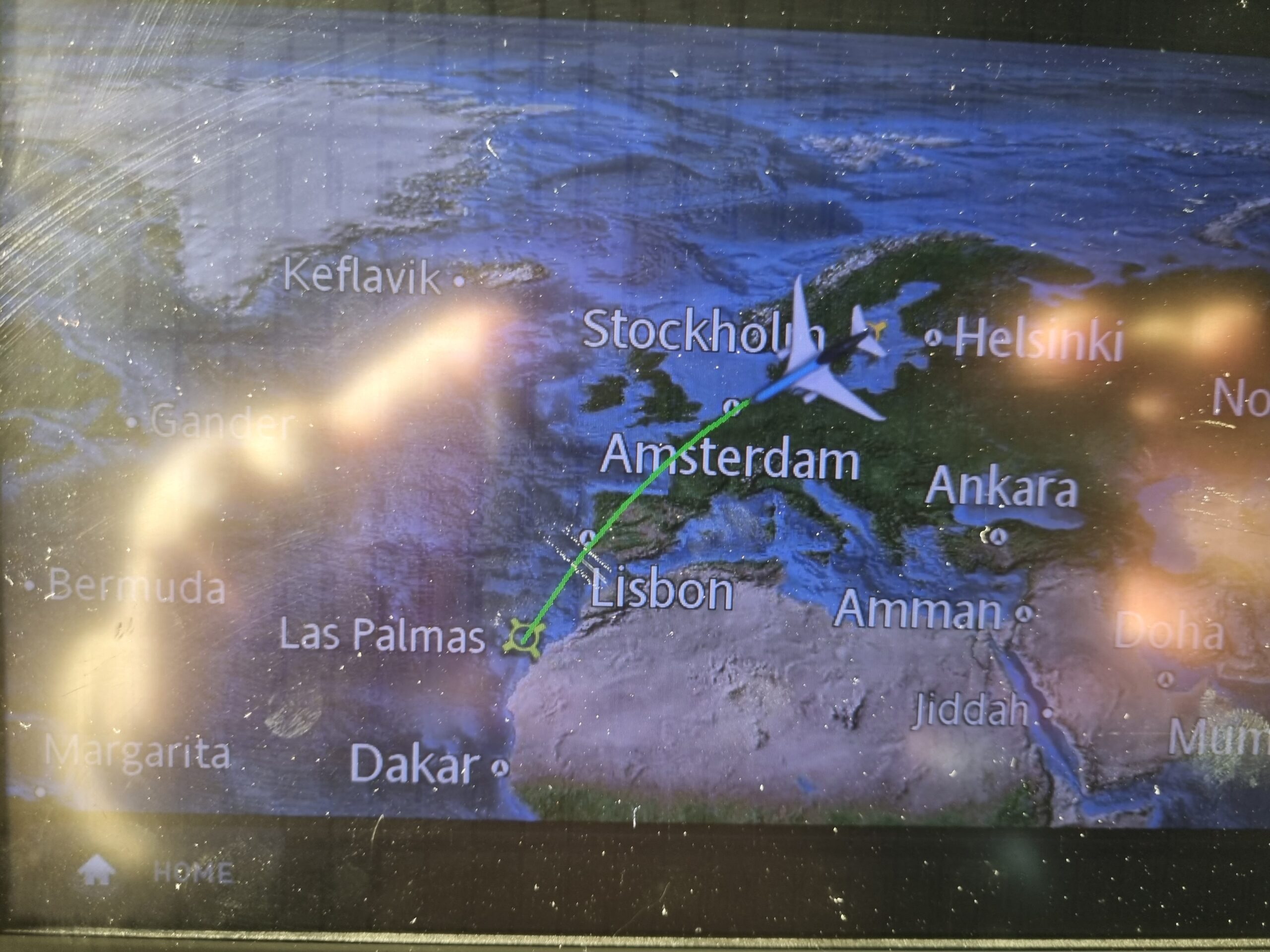 Jag hade turen att få åka en Dreamliner till Gran Canaria. Ett stort flygplan som tar ungefär 300 passagerare. Fönstren är ganska stora och man reglerar med en knapp under fönstret hur mörka de ska vara. Opacitet tror jag det heter. Får kolla upp det. Fönstren blir i alla fall mörkare och inte lika genomskinliga då man trycker några gånger på knappen. Så ersatte de fönsterskydden man på andra plan drar ner då solen skiner för mycket ovanför molnen.