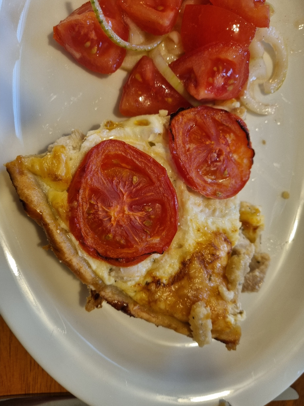 Skivade tomater överst.