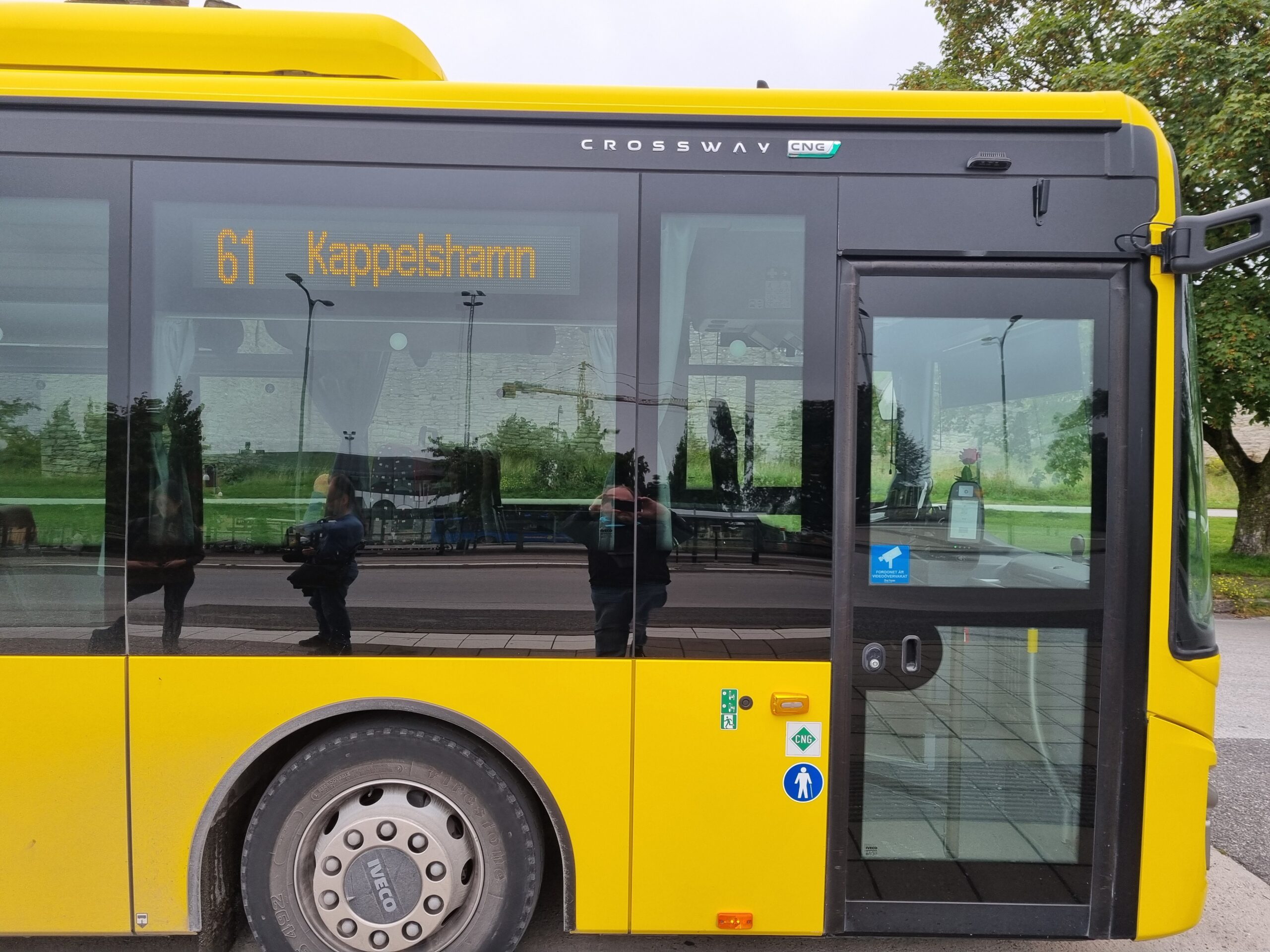 Åkte buss tillbaka till flygplatsen vid Visby.