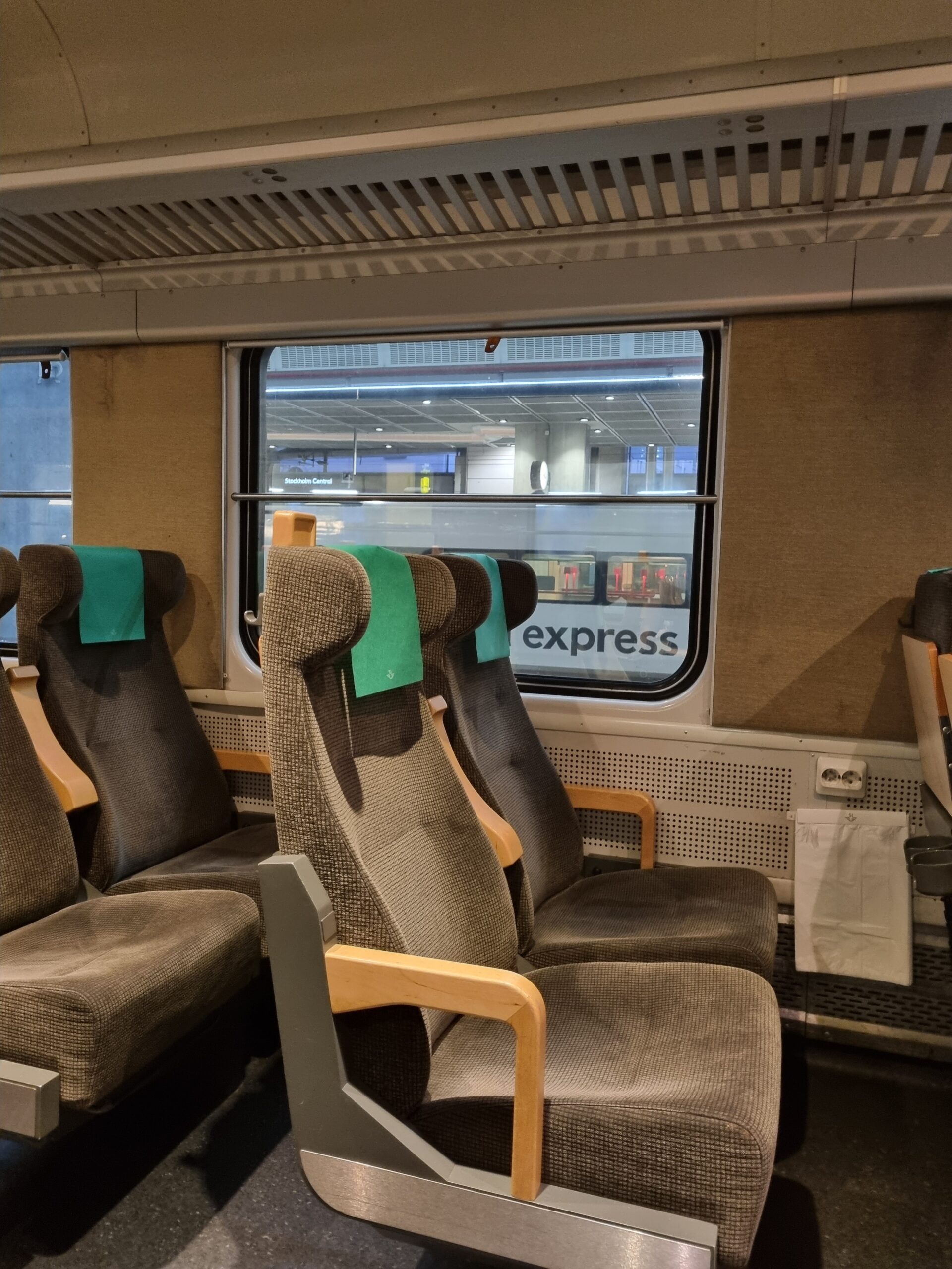 Bokade fönsterplats. Tåget hade 5 sittvagnar och 1 lok.