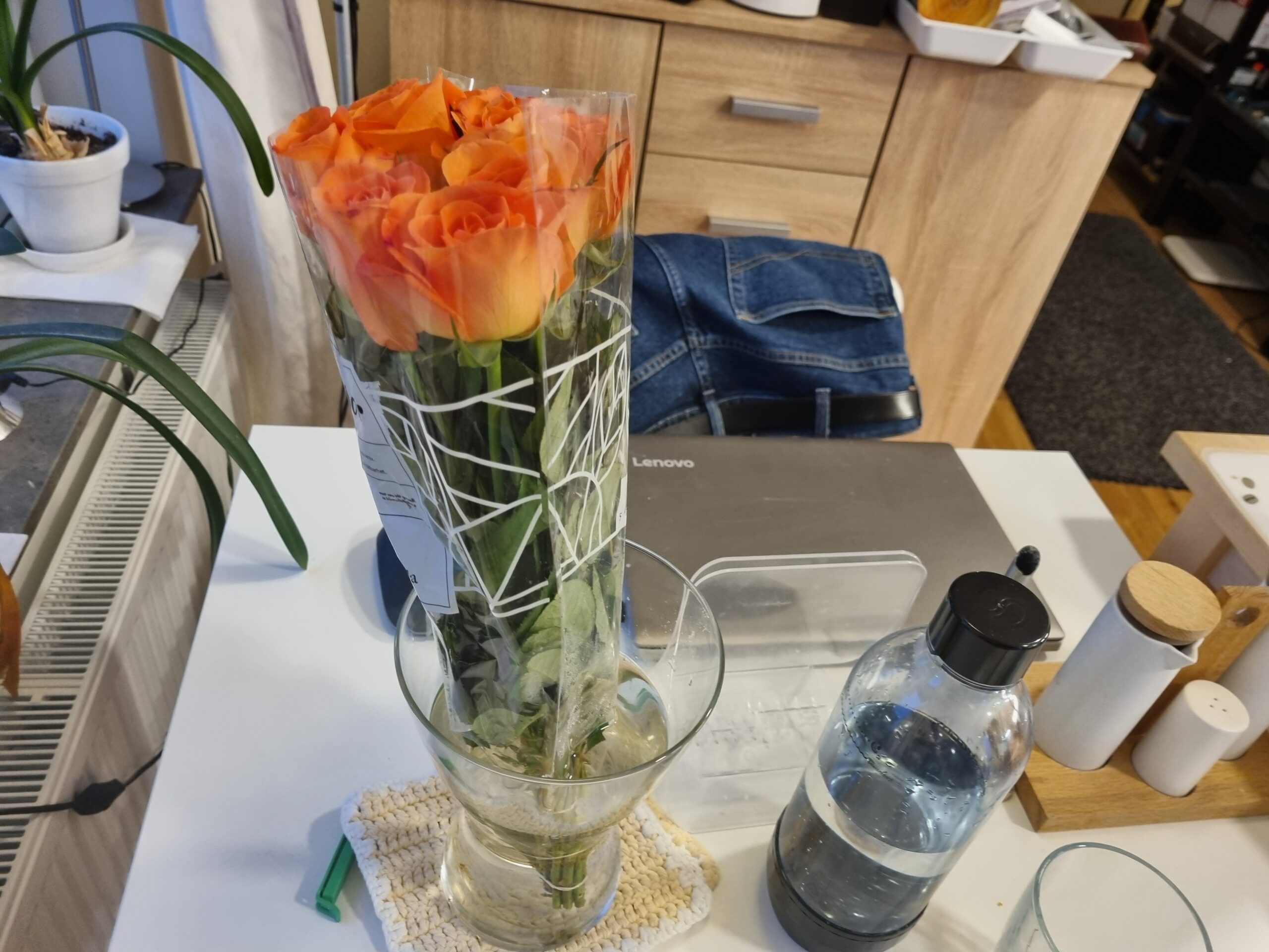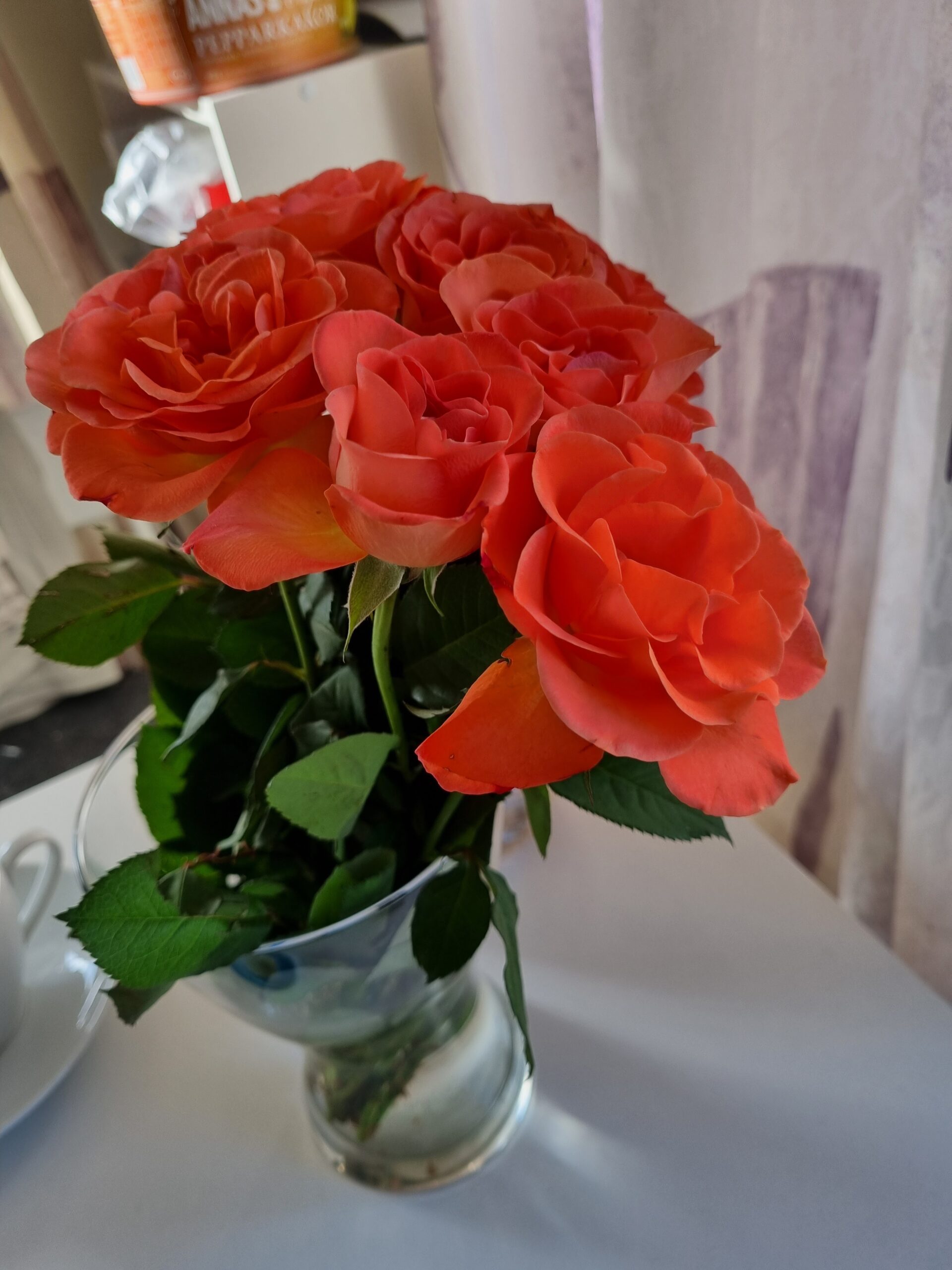 Fick blommor av min mamma. 10 orange rosor.